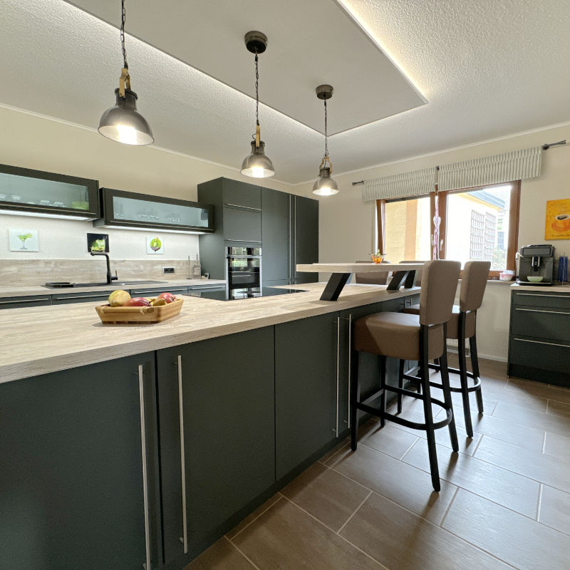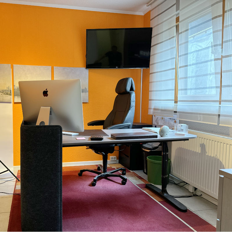 Für Selbständige und Homeoffice-Nutzer:innen wurde außerdem ein von den Wohnräumen getrenntes Büro eingerichtet. Der ruhige und großzügige Arbeitsbereich schafft die ideale Umgebung, um berufliche Ziele in einem entspannten und persönlichen Rahmen zu verwirklichen – ohne dabei vom familiären Alltag abgelenkt zu werden.